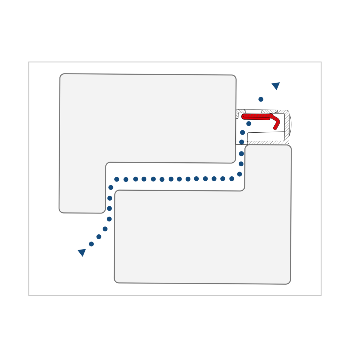 Der SchimmelProtekt Fensterfalzlüfter wird im oberen Bereich des Fensterflügels angebracht. Die Außenluft gelangt durch spezielle Aussparungen in den Fensterfalz und wird von dort durch das Lüftermodul in den Raum geführt. Zwei feinfühlige Klappen regulieren die Luftzufuhr und verhindern so Zugluft. Da der Lüfter keinen Strom benötigt, ist er wartungsfrei und arbeitet besonders umweltfreundlich.